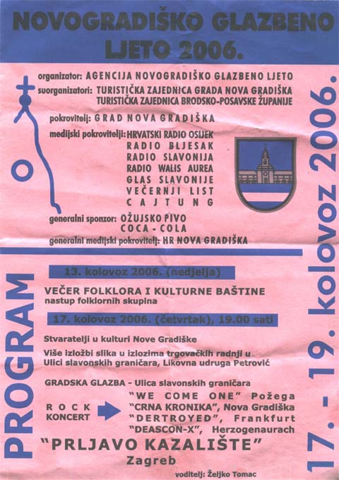 War ein sehr geiles, gut besuchtes Festival in der City von Nova Gradiska. Auf dem Flyer hat sich bei unserem Bandnamen der Fehlerteufel eingeschlichen...